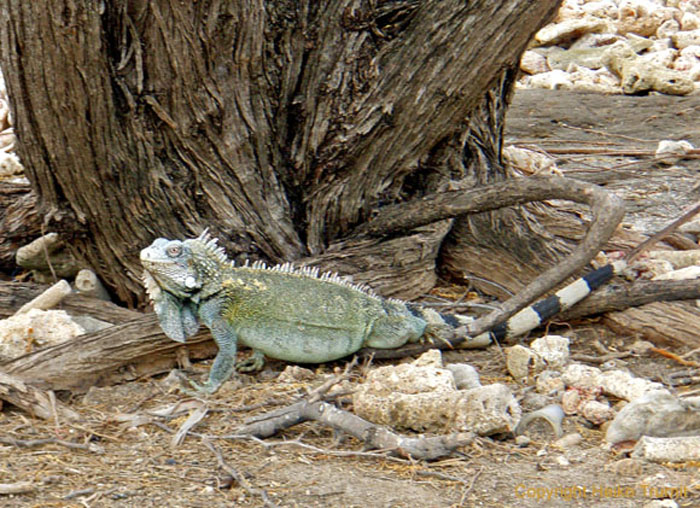 Echsen sind die Wahrzeichen der Inseln, und man begegnet ihnen allenthalben; und sei es in den kunsthandwerklichen Arbeiten der Einheimischen. Manchmal liegt am Straßenrand ein Leguan, der zu lange dort in der Sonne gefaulenzt hat und den Pneus nicht mehr entkam. Geschmorter Leguan ist auch ein beliebtes Angebot auf der Speisekarte.