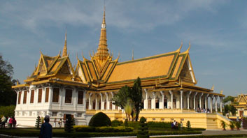 Ein paar Busgesellschaften bedienen die Route nach Phnom Penh. Dort muss man sich dann in den wahnwitzigen Verkehr wagen. In die Kreuzungen fahren die Fahrzeuge, in der Mehrzahl Motorräder und Tuk-Tuks, von allen Straßen gleichzeitig ein zu einem scheinbar unentwirrbaren Chaos, um dann doch irgendwie wieder raus gespült zu werden, wenn vielleicht auch auf der falschen Straßenseite. Aber das macht nichts, da hupt man sich den Weg eben frei. Als ich das einmal mit dem Moto mitgemacht hatte, nahm ich dann nur noch Tuk-Tuks, weil ich zu sehr Angst um meine Beine hatte. Ich war hier 1997 schon einmal. Häuser und Straßen waren vom Krieg zerstört. Es gab nur ein paar Motorräder. Die Leute schliefen zu Tausenden in den Straßen. Vor dem einzigen Straßen-Café prostituierten sich die Kinder, alle paar Minuten stieß ein bettelnder Invalide einem seinen Armstumpf ins Gesicht, nachts waren immer wieder Gewehrschüsse zu hören. Es war traumatisch, und ich verließ das Land ganz schnell wieder in Richtung Vietnam. In der Zwischenzeit hat sich viel getan. Die Stadt ist eine einzige riesige Baustelle. Ich habe mir sagen lassen, dass die Bewohner aus dem Zentrum zwangsevakuiert werden, um dem Boom Platz zu machen. Überall entstehen neue Hotels und Restaurants, vor allem in dem Viertel nördlich des Königspalastes, in dem schon wieder etwas von französischem Flair zu spüren ist. Ausnahmsweise preiswertes - und dazu sehr schmackhaftes - Essen fand ich im Gasthaus Last Home. Ich wollte da auch wohnen, aber wie in vielen anderen Häusern in der Hochsaison war kein Zimmer frei. Ich bin nebenan im Royal Highness untergekommen für 20 Dollar die Nacht, das war okay. Das Glanzstück von Phnom Penh ist der prachtvolle noch nicht 100 Jahre alte Königspalast. Für seine Besichtigung einschließlich der Silberpagode und zahlreicher Museumsstücke sollte man sich schon ein paar Stunden Zeit nehmen. Zur Entspannung kann man einer Kambodschanerin beim Weben zusehen oder den Klängen traditioneller Musik lauschen. Wem am frühen Abend ein stimmungsvoller Spaziergang am Ufer des Tonle Sap nicht ausreicht, will vielleicht beim allgemeinen Aerobic vor dem Tanzpavillon mitmachen. Ein Muß ist der Besuch desVölkermordmuseums Toul Sieng. In den Räumlichkeiten des ehemaligen Schulgebäudes hatten die Roten Khmer ein Verhör- und Folterzentrum eingerichtet, in dem Tausende den Tod fanden. Die zum Teil winzigen Zellen, in denen man sich noch nicht einmal ausstrecken konnte, die eisernen Bettgestelle, an die die Gefangenen gekettet waren, die Fotos der Opfer und die Gemälde der Foltermethoden sind realistische und bestürzende Zeugnisse einer furchtbaren sich über Jahre hinziehenden Greueltat, die tief betroffen macht. 1997 gab es hier an der Wand noch eine Landkarte von Kambodscha zu sehen, die aus den Schädeln gefolterter Opfer zusammen gesetzt war. Von Phnom Penh ging es mit dem Bus weiter nach Battambang, einer geruhsamen kleinen Stadt am Ufer des Sangker Flusses. Ein Markt, einige Kolonialbauten und zwei Pagoden sind aber alles was es zu sehen gibt. Der Ort ist noch nicht so touristisch versaut, die Leute sind freundlicher, die Preise für Ausländer wesentlich niedriger. Sehr zu empfehlen ist das Hotel Royal, nur sollte man sich vom Manager kein Zimmer in einem Gasthaus in Siem Reap buchen lassen, da die nicht so gut sind. Ein schöner Ausflug führt zum Phnom Sampeau, einem Hügel mit mehreren Pagoden und Höhlen. Von da wo man vom Moto abgesetzt wird, muss man noch ganz schön lange laufen, und sich der Dienste sich anbietender Halbwüchsiger bedienen, damit man sich nicht verläuft. Außerdem haben diese Kinder eine Taschenlampe dabei, die man für die Besichtigung der Höhlen braucht. Morgens um 7 Uhr fährt das Boot nach Siem Reap. Es ist lange nicht so überfüllt wie das in der Gegenrichtung. Touristen und Einheimische sind die Fahrgäste. An den Orten auf dem Weg wird in der Regel nicht gehalten, sondern kleinere Boot kommen um die Kambodschaner, die aussteigen wollen, abzuholen. Trotzdem dauert die auf sechs Stunden angesetzte Fahrt dann doch acht. Aber es ist ein Highlight der Reise, im Vorbeifahren das Leben am Fluss zu beobachten. Die Kamera hat dank der vielen Motive keine Pause. Vom Sangker-Fluss geht es dann durch schmale in Mangrovenwälder gehauene Passagen -da wird es richtig abenteuerlich - in den Tonle Sap Ja, und Siem Reap ist auch eine Enttäuschung. Kein schöner Ort, sehr staubig ist es wie überall. Mehrere Gasthäuser habe ich mir angesehen, die mir alle nicht gefallen haben, weil entweder die Zimmer armselig waren, das Management keinen Vertrauen erweckenden Eindruck machte oder die Häuser einfach ungünstig lagen. Ein wirklich gutes, in jeder Hinsicht zufrieden stellendes, ist das neue Prohm Roth Guesthouse neben dem gleichnamigen schönen Tempel. Von diesem ist es auch nicht weit zur Pub Street, einem Areal mit vielen Restaurants, Bars, Musik, wo sich abends alles trifft. Hier sitzt man angenehm draußen, fröhnt den Landesspezialitäten und genießt ein kühles Bier. Und wer andere sinnliche Freuden sucht: Hier flanieren auch die Schönen der Nacht, doch Vorsicht, nicht alle sind weiblichen Geschlechts. Wenn wohl auch nur Kunsthistoriker voll die Großartigkeit dessen voll ermessen können was da vom 8. bis 12. Jahrhundert erschaffen wurde, so ist der Anblick von Angkor Wat doch auch für den Laien überwältigend. Und man muss sich das vergegenwärtigen: Die gesamten Tempelanlagen erstrecken sich über eine Fläche von über 300 qkm. Neben dem gewaltigen Haupttempel mit seinen fünf gigantischen Türmen besticht vor allem die mit einer Mauer umgebende Stadt Angkor Thom mit seinen Statuen von Göttern und Dämonen vor den Toren und den riesigen in alle Himmelsrichtungen blickenden Gesichtern im Innern. Das schönste Bild bietet aber vielleicht Ta Prohm, wo sich ein gewaltiger Baum in den Tempel gebohrt hat, und einen Eindruck vermittelt davon wie sich die Anlagen einmal im