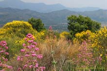 Ginster. Darüber, bis in 2000 m Höhe, erstreckt sich eine Waldzone mit